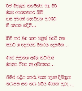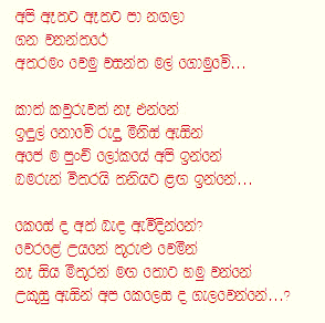 Far far away into the deep woods Just you and me, To get lost among the beautiful spring blossoms..... Where, there isn't a single soul to see us Unspoiled by human touch We'll be in a paradise of our own Only the bees will be there To chase the loneliness away..... How can we walk hand in hand? On the soft sand on the beach Or under the shade of garden trees Everywhere we turn Somebody is watching, like a spy How can we escape that evil eye.....? |