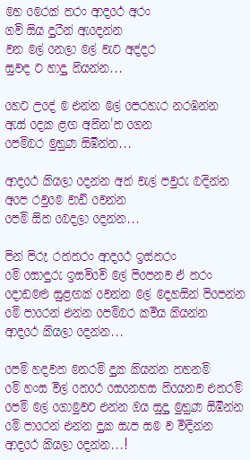From thousands of leagues away Pick up wild flowers on your path Leaving a trail of sweet kisses along the way..... Come bright and early tomorrow To watch the flower parade To hold hands when our eyes meet And to leave a gentle kiss on your cheek..... Hands in hands, whispering about love Sitting in our circle To share the love in your heart..... Love is golden, love is precious In this adoring land so full of blooms Be a whispering breeze Wake up to the smile of flowers Come along this way, sing the song of love And tell me and teach me all about love..... Hearts full of love, so beautiful no room for sorrow A swan lake brimming with affection Come to this blissful land of love Let me leave a kiss on your pretty face Come along this way, share the joys and tears And tell me and teach me all about love.....! |