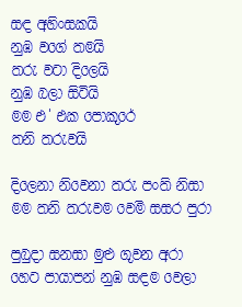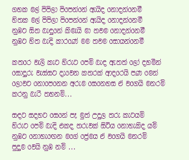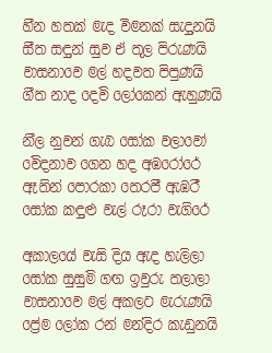 And still can hear the joyous melodies from heaven And feel my heart blossoming Overjoyed with blessings The day I had dreams of you and me Not just one, but seven enchanting dreams Drifted you and me into a wonderful paradise Struggling hard, twisting and turning high The clear blue sky gave out a sudden cry Fighting the dark clouds with all her might Weeping blue eyes turned red over the night Melting the memories away with a deep sigh Pouring of an untimely rain Flooded my heart with tears and sighs The memories we made were on the rise Like an ocean struggling with her tide The flowers blossomed are dead now Drowning in that heartless rain The paradise I have dreamed of Is shattered and ruined in the whirling flow Right before my weeping eyes And no where to be found any more..... |