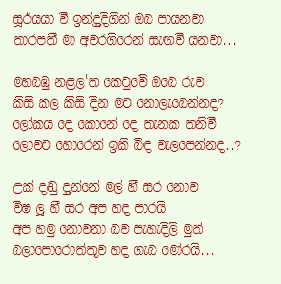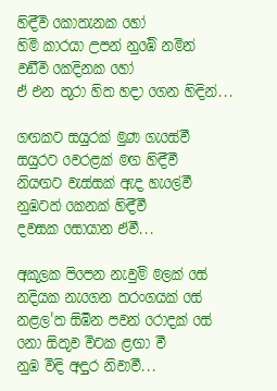 From the eastern horizon above I am the moon, disappearing secretly Through the western hills beyond..... Is it written in the stars That we are never meant to meet? And to be oceans apart Weeping silently Hiding from the whole world....? These are not the arrows from cupid Adorned with sweet flowers But poisonous and fatal That sting our lamenting hearts..... Even though it is beyond doubt That we are not meant to be together There is hope deep inside the heart Glowing like a spark forever..... |